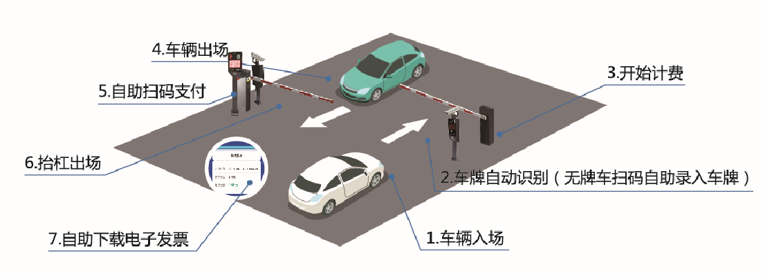 - ●临停移动支付:临停车辆在出厂前可自主扫码缴费,自动出场。